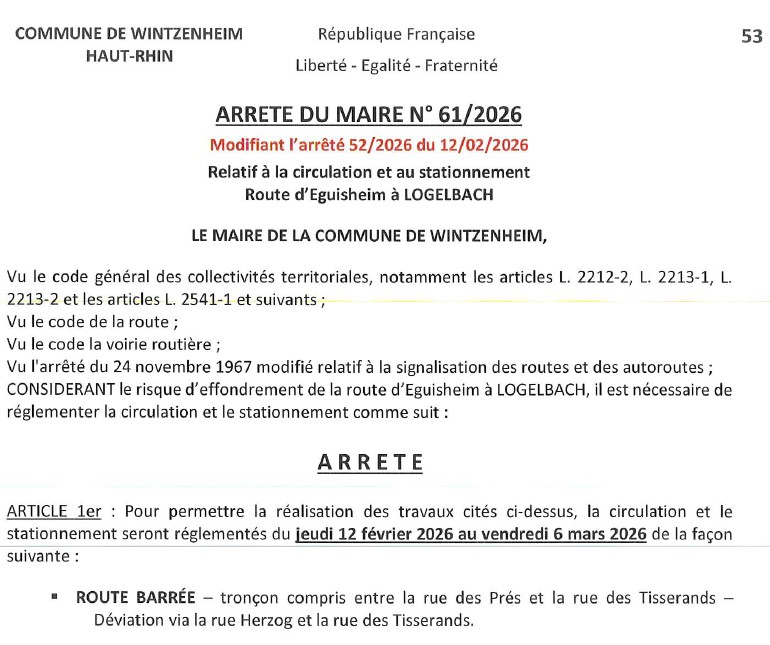 • Les arrêtés relatifs à la voirie